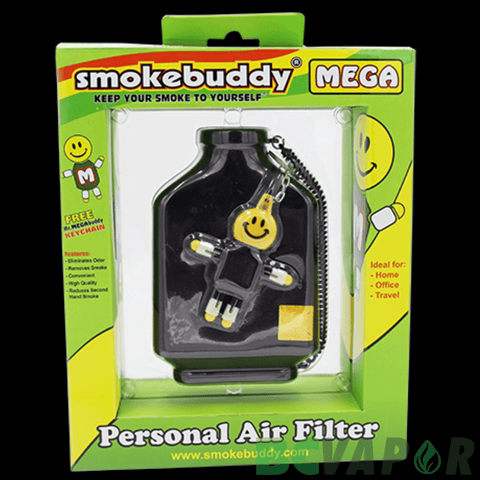 Smokebuddy MEGA is our newest smokebuddy. Designed with a filter twice as large as the Original Smokebuddy. The flat shape fits in your hand and looks great. Every Smokebuddy MEGA includes a MEGA size Mr. MegaBuddy LED keychain that will light up when you squeeze him.Smokebuddy MEGA will last the heavy users months and possibly years. The Smokebuddy MEGA is a handy, and reliable, life saving air filter. Simply exhale your smoke through your easy-to-use Smokebuddy MEGA and odorless air comes out the other end. Smoke where you want, and when you want without anyone knowing the wiser. Keep second hand smoke away from friends, family, and neighbors with your Smokebuddy MEGA.